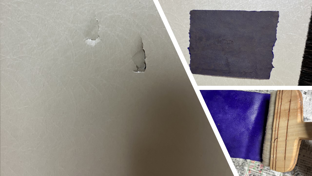 ↓補修後にちり紙を貼り付け。本襖はちり紙や襖紙を側面に巻き込んで貼り付けるので